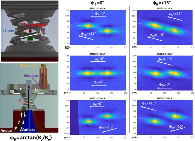 Post, December 3, 2025 • Post Author: Thomas J. Awe (left top) Orientation of current flow around the HRC, generating a positive axial field component. Note that the red-colored 1.00-mm-diameter surface can be fully viewed from 0° and 180° diagnostic lines of sight. (left bottom) Orientation of current flow downward through the z pinch, generating...